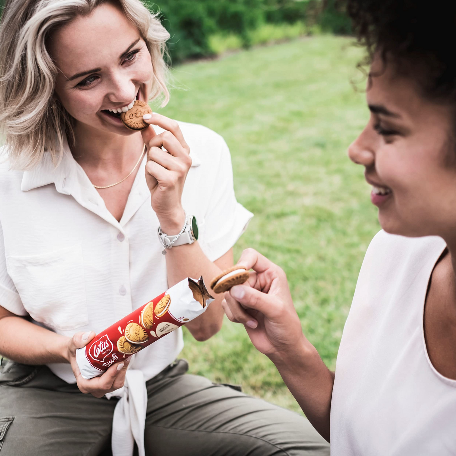 Caramelised Sandwich Biscuits with a Vanilla Flavour Filling (28%)