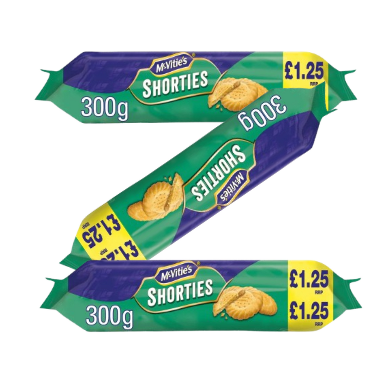 McVitie's Shorties Biscuits (300g) are a nice selection of biscuits perfect for your teatime. With it being made without any hydrogenated vegetable oil, it makes it a healthier choice of biscuits to share during your tea breaks. Suitable for vegetarians, free from artificial colours and flavours.