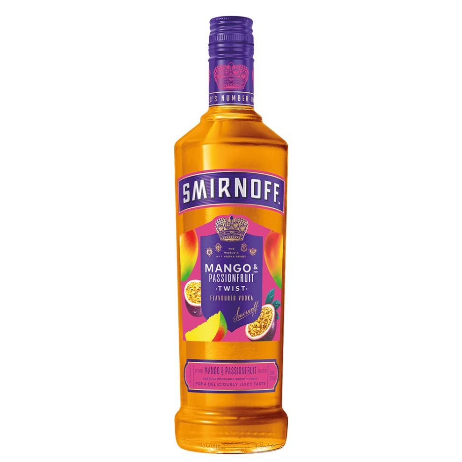 Discover a tropical twist with Smirnoff Mango & Passionfruit Twist Vodka! This premium, triple-distilled vodka is infused with the exotic flavors of juicy mango and tangy passionfruit, creating a smooth and refreshing taste. Perfect for cocktails, mixing with soda, or enjoying over ice, this flavoured vodka is a must-have for any party or summer gathering. Elevate your drinks with a fruity burst of Smirnoff!