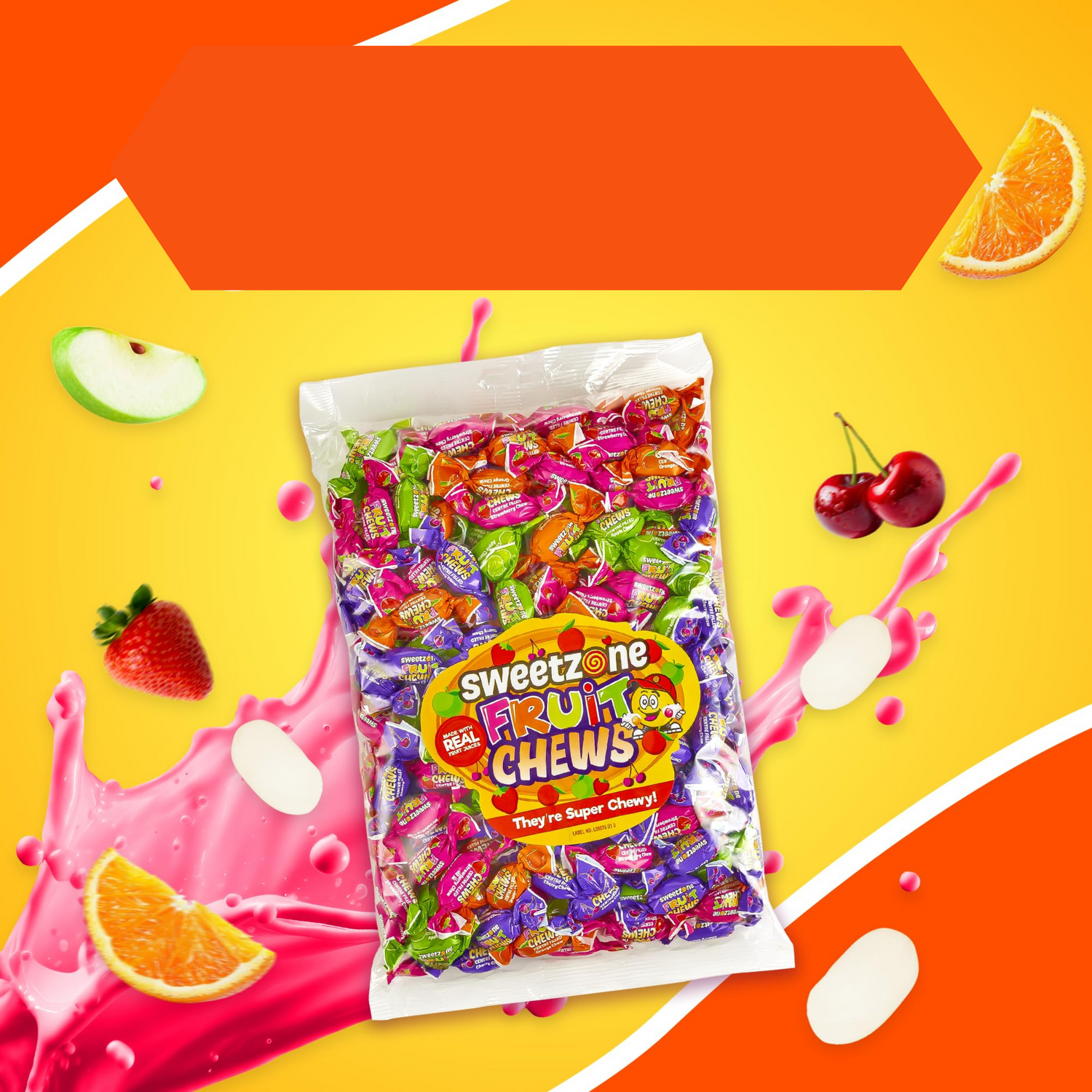 Sugar, Glucose Syrup, Fruit Filling [Sugar, Glucose Syrup, Fruit Juice Concentrate (Orange 10%, Strawberry 3%, Sour Cherry 10%, Apple 10%), Citric Acid, Stabiliser (Pectin), Flavourings (Orange, Strawberry, Sour Cherry, Apple)], Dextrose, Vegetable Oil (Palm), Sorbitol, Beef Gelatine (Halal), Citric Acid, Flavourings (Orange, Strawberry, Sour Cherry, Apple), Emulsifiers (Sunflower Lecithin, E471, E307), Salt
